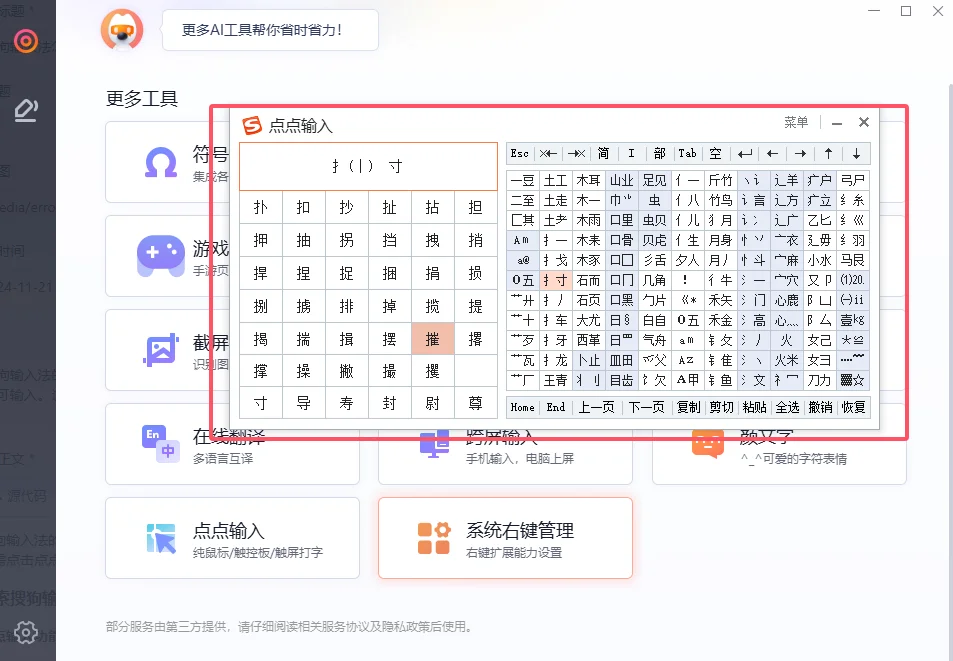 - 启动点点输入:在搜狗输入法下载好应用的键盘界面,找到并点击带有“...”标记的键。这通常位于键盘的右下角或特定区域,点击后会弹出一个包含常用符号和表情的菜单。